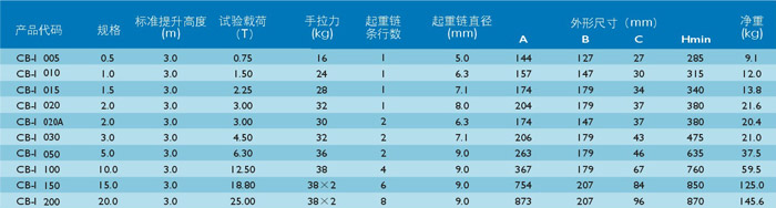 艾培爾CB-I型日本款式環(huán)鏈手拉葫蘆參數(shù):