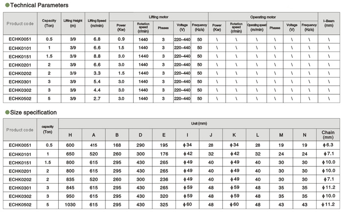 艾培爾ECHK固定式電動葫蘆參數: