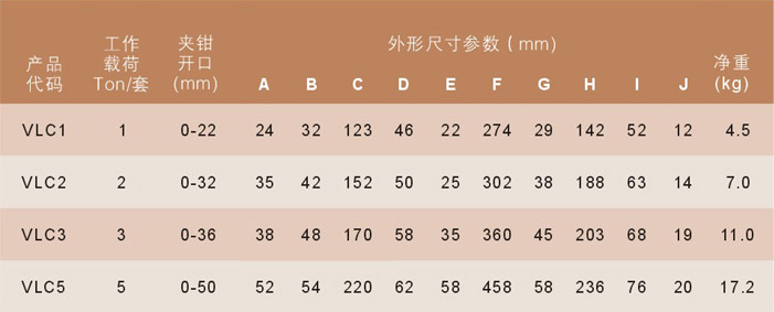 務(wù)請(qǐng)注意VLC吊鉗的工作載荷(WLL)是指一對(duì)吊鉗的安全承重載荷。