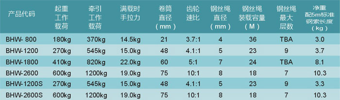艾培爾BHW-S型帶剎車型手搖絞盤機(jī)參數(shù):