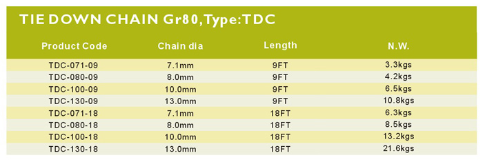 艾培爾TDC型起重鏈條80參數(shù):