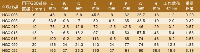 艾培爾G80澳式羊角帶翅抓鉤HGC型參數: